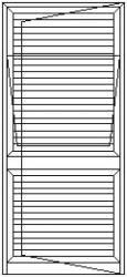 Spagnoletta - bandelle stesso colore persiana (ad esclusione colore legno) (rivetti neri) n°2 x anta se H<1700 mm, altrimenti 3 x anta; per colori legno bandella nere, consigliata quella a lancia - Nodo centrale con riporto centrale simmetrico - Zoccolo inf. H 100 MM - Fascia centrale per porte 100 mm, H da terra a centro fascia mm=987,2 - ANTA 3 lati sx=Z, sup=Z, dx=Z , sotto zoccolo - Ogni riferimento Vista interna